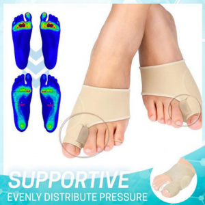 The orthopedic design with comfortable spacing and gel bunion pads treats the bunion and restores the big toe to its natural alignment . It distributes even, optimal compression across the arch, heel, and ball of the foot to eliminate pain and daily swelling .